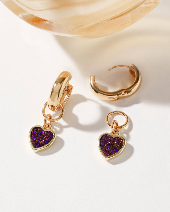 Heart's Accelerated Huggie Hoop Earring Gold - Plum Druzy by Luna Norte